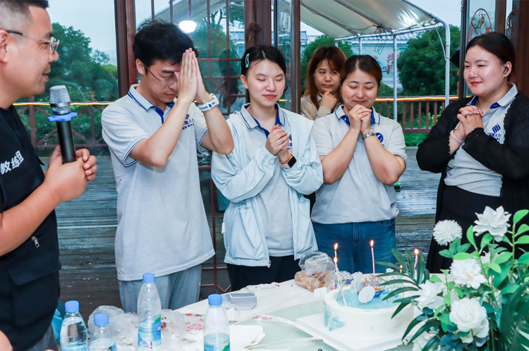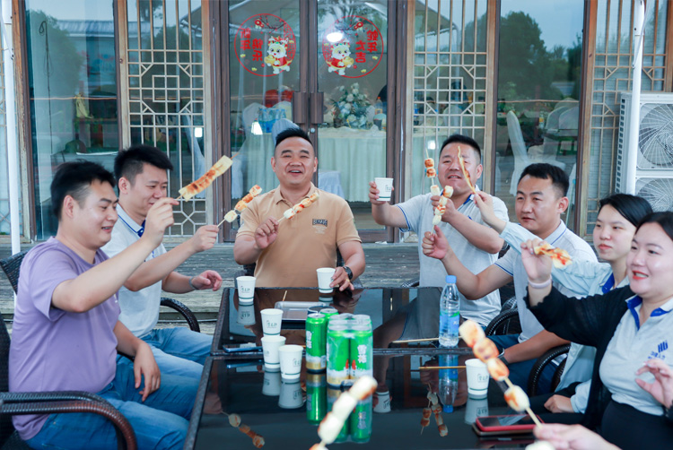 夜幕降临,太湖边晚风轻拂,烧烤活动热闹开启。我们围坐炭火旁,食材在烤架上滋滋作响、香气四溢,大家边烤边聊、分享美食,情谊与信任在分享中升温,团队凝聚力悄然增强。活动尾声,惊喜登场,同事们为6月生日伙伴围唱生日歌、送上祝福,孩子们收到公司定制的“犇犇”毛绒公仔,脸上洋溢着惊喜与快乐,这份关怀让每个人感受到家的温暖。这个烧烤夜,美食与情谊交织,成为温暖回忆,提醒我们忙碌工作之余,还有这个充满爱与温暖的大家庭。