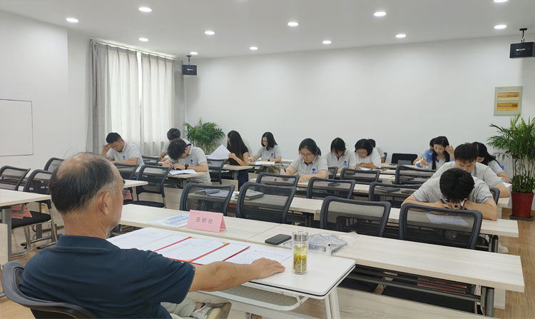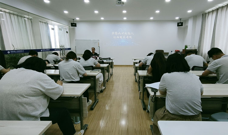 在会议开始之前,我们组织安排了一场重要的考试——华隆人才技能认证与发展考核。新入职员工和上期未通过考核的员工共计15人参加考试。这是一次全面评估员工专业技能和发展潜力的考核,是华隆每一位员工都必须通过的技能考核。由职校校长董建石监考,确保了考核的公正性和成绩的真实性,也体现了公司对员工成长的重视。