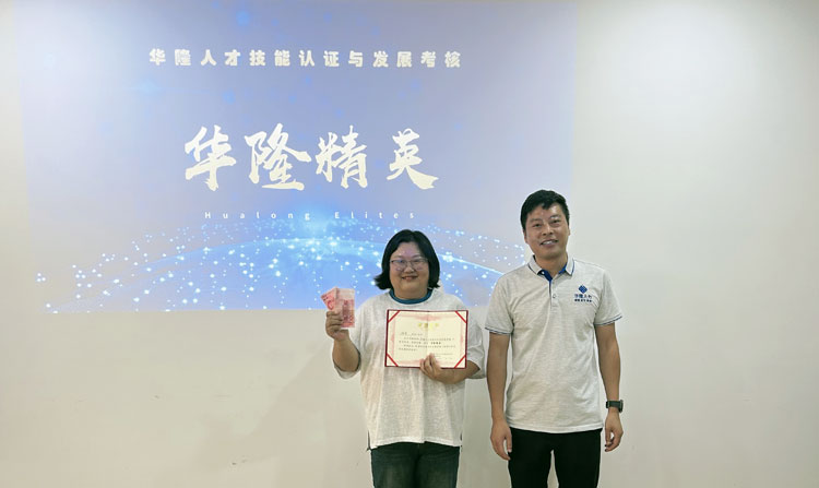 总经理张飞为通过华隆人才技能认证和发展考核的8位伙伴颁发荣誉证书。