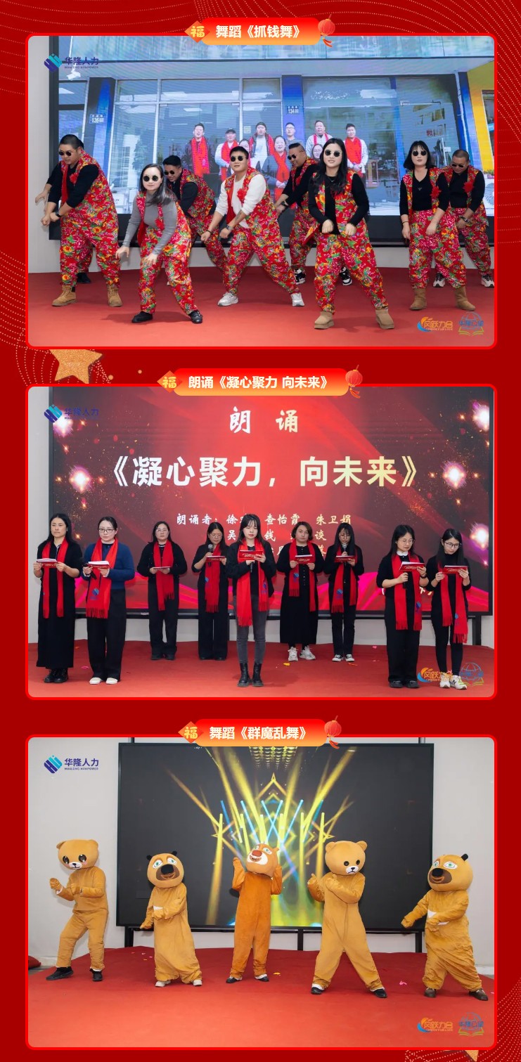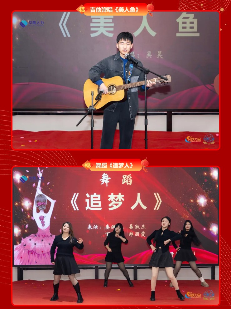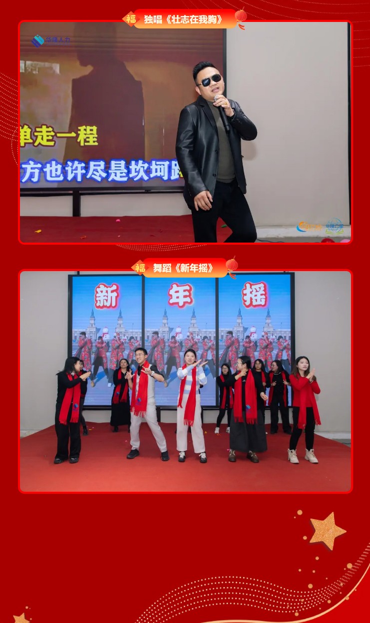 各区域团队精心呈现了一场才华与热情交织的视听盛宴。从深情歌唱到活力舞蹈,从创意情景剧到诗朗诵,每一个节目都凝聚着团队的巧思与协作,展现出华隆人工作之外的多彩风貌与蓬勃朝气。