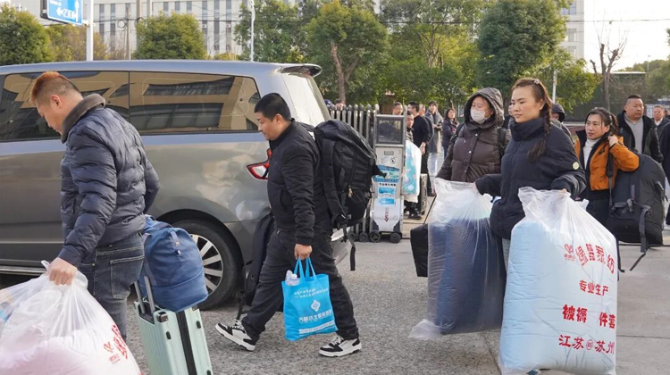 我们常年开展送工到企工作,在年前就和劳务输出基地进行对接,准备好大巴车,年初五在哈尔滨发车,经过40多小时的长途跋涉,员工安全到达工厂。